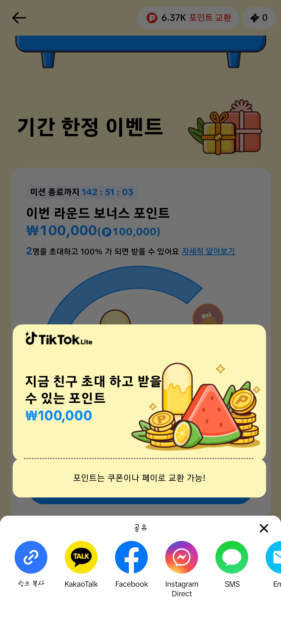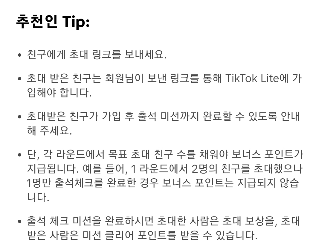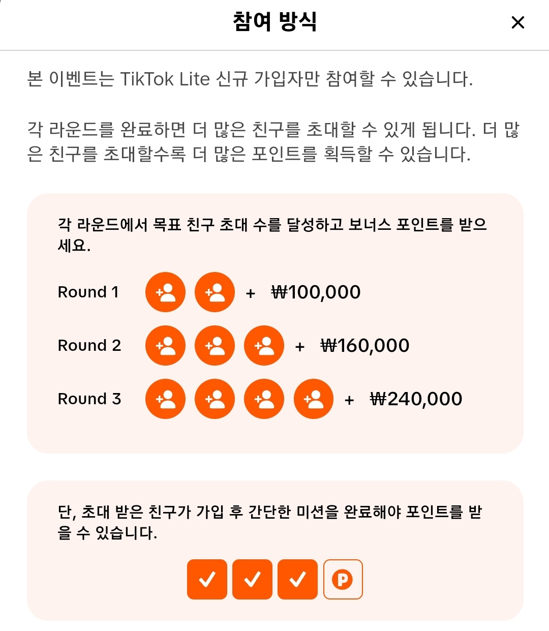 - 방법 : 틱톡라이트 친구초대, 틱톡이용, 한정이벤트, 상시이벤트