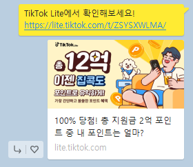 이렇게 틱톡라이트 초대 링크를 카카오톡으로 보내고, 받은 링크로 가입하면