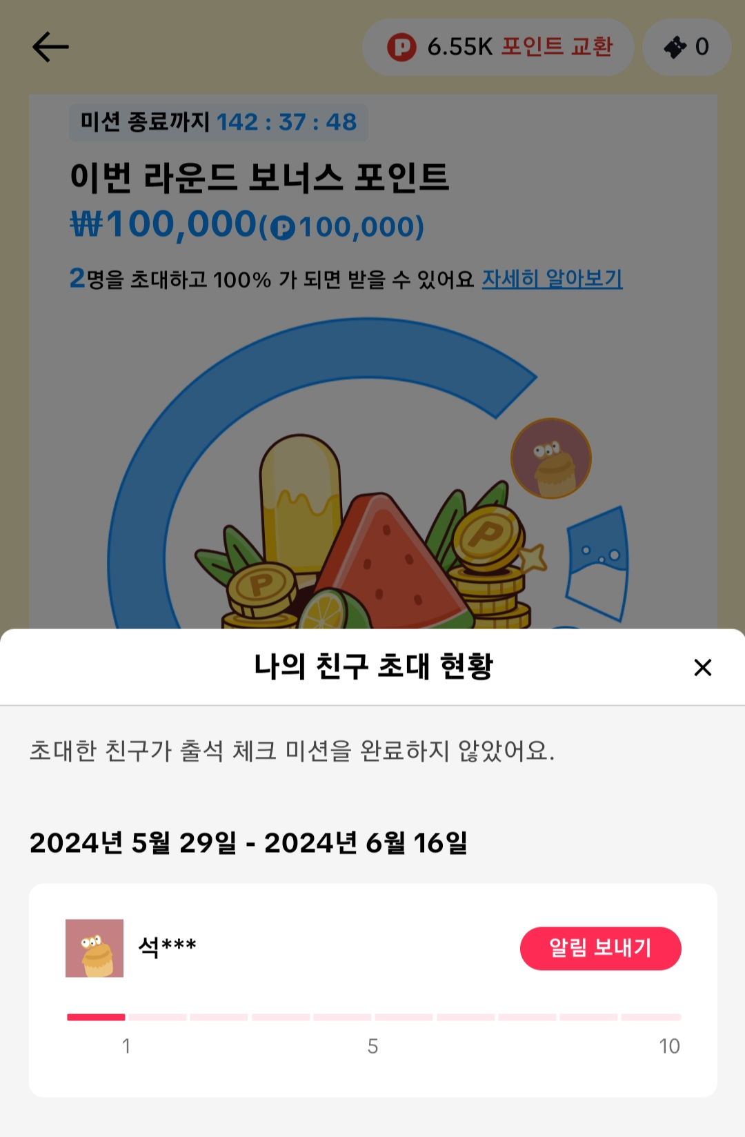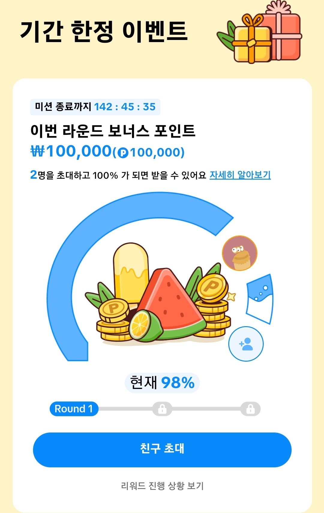 초대하고 끝이 아니라 가입 후 간단한 미션을 완료해야 포인트를 받을 수 있습니다.