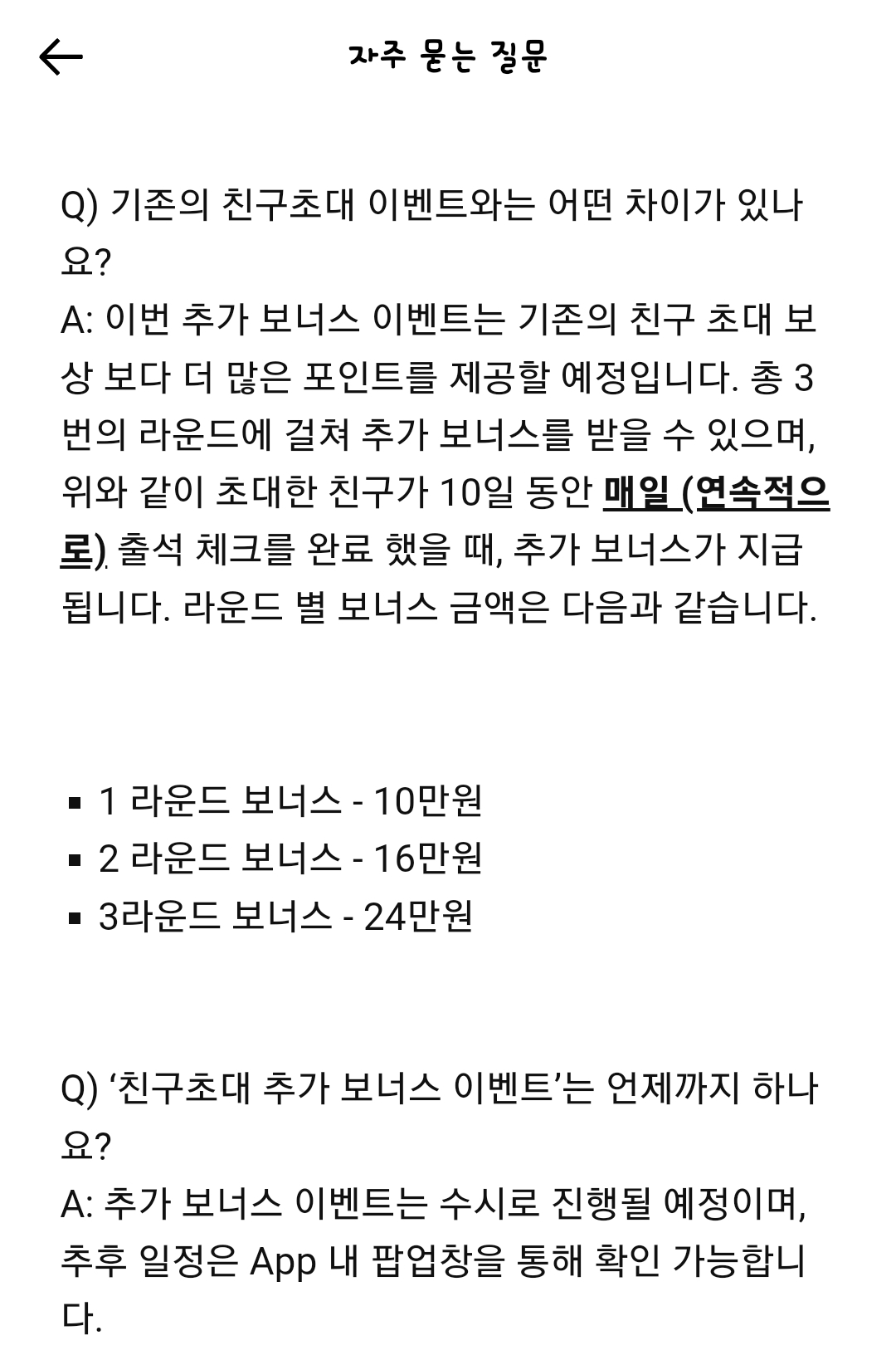 관심 있으신 분들은 저의 초대링크를 통해 앱설치 후 가입, 출석 체크, 친구 초대를 하시면 됩니다.