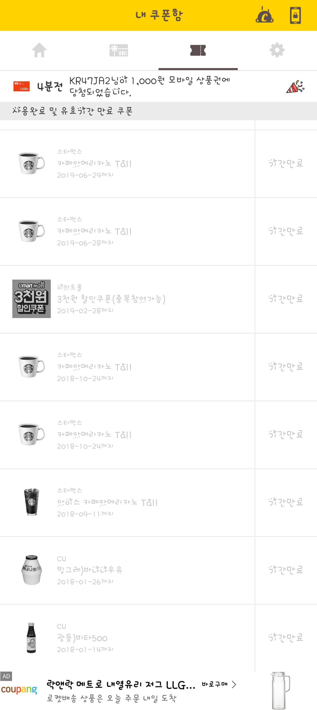 - 캐시로 쿠폰 구입해서 커피 마실 수 있어요.