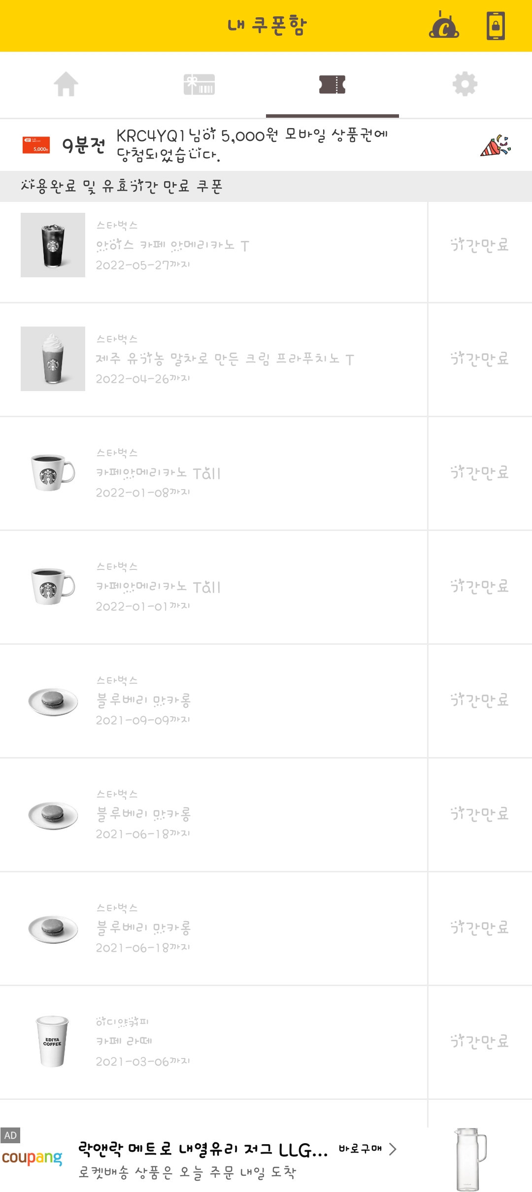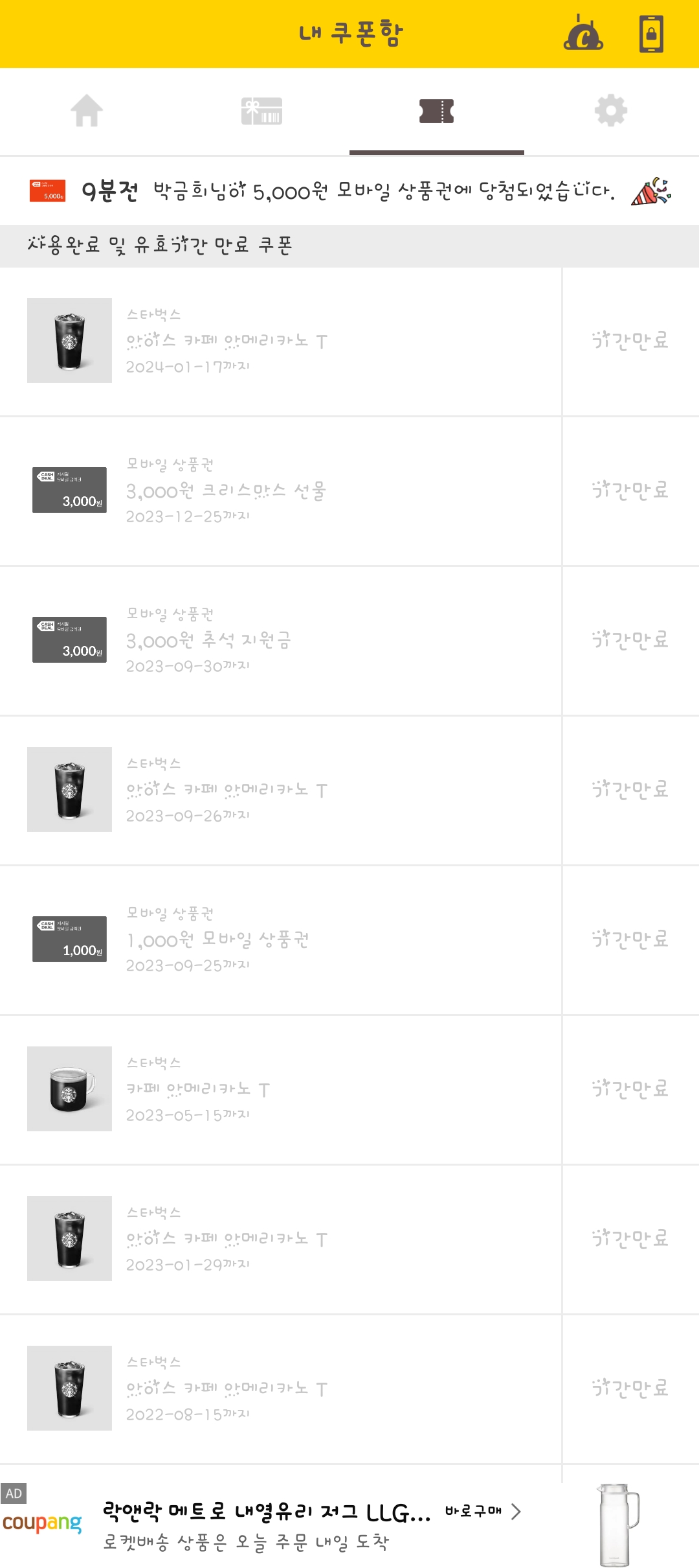 전 앱테크 덕분에 꾸준히 돈 별로 사용하지 않고, 스타벅스 골드회원을 유지할 수 있었답니다.