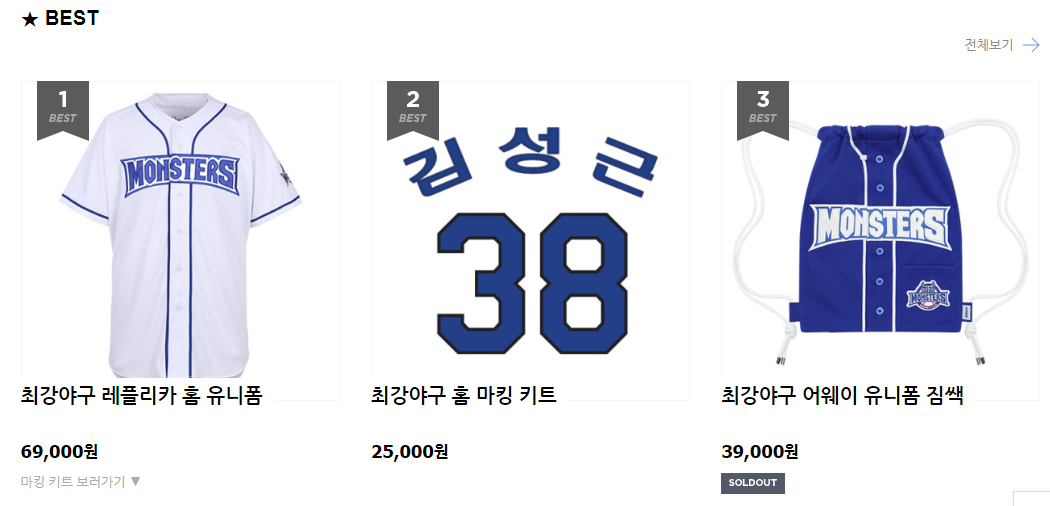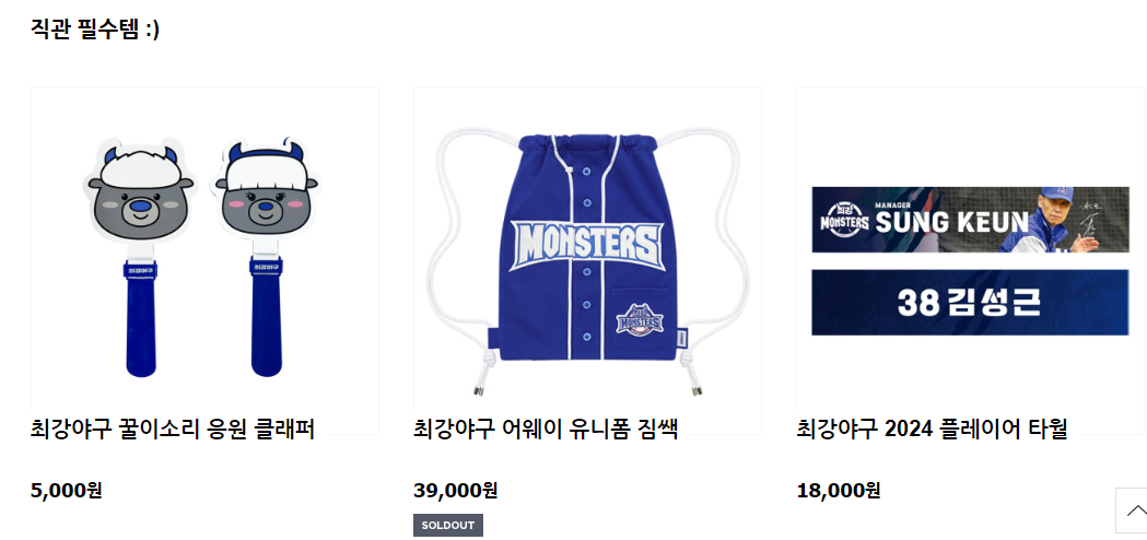 최강야구 스마트 스토어에서 기존에 직관때 보이는